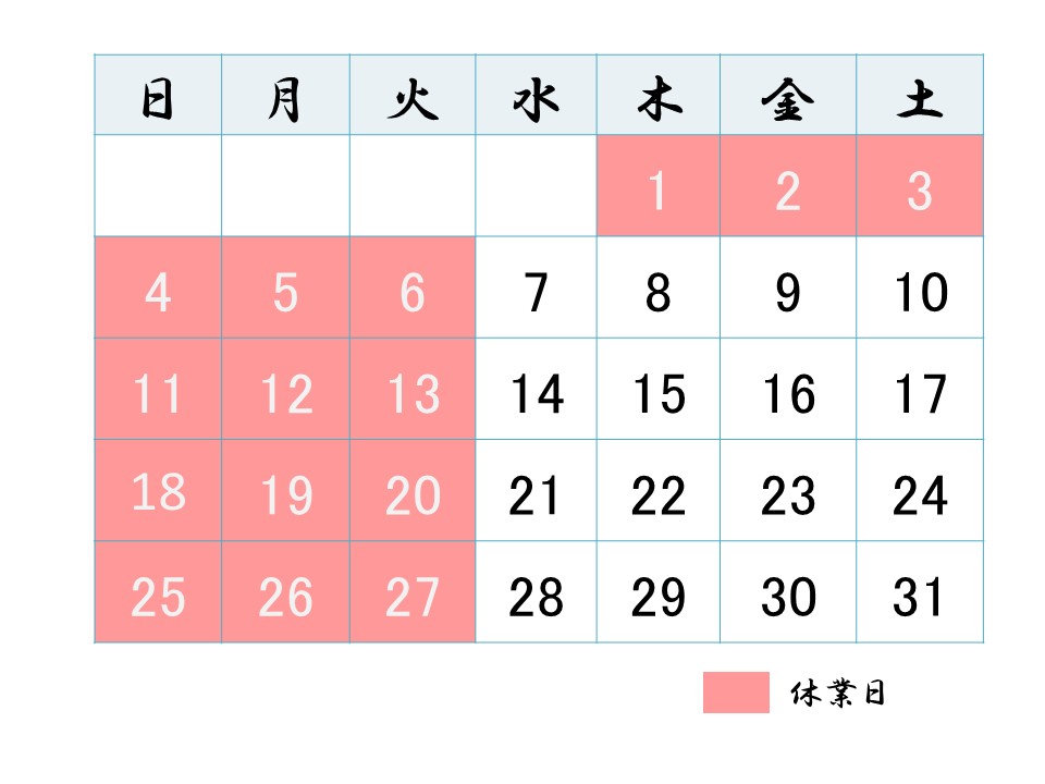 1月の営業予定は上記のとおりです